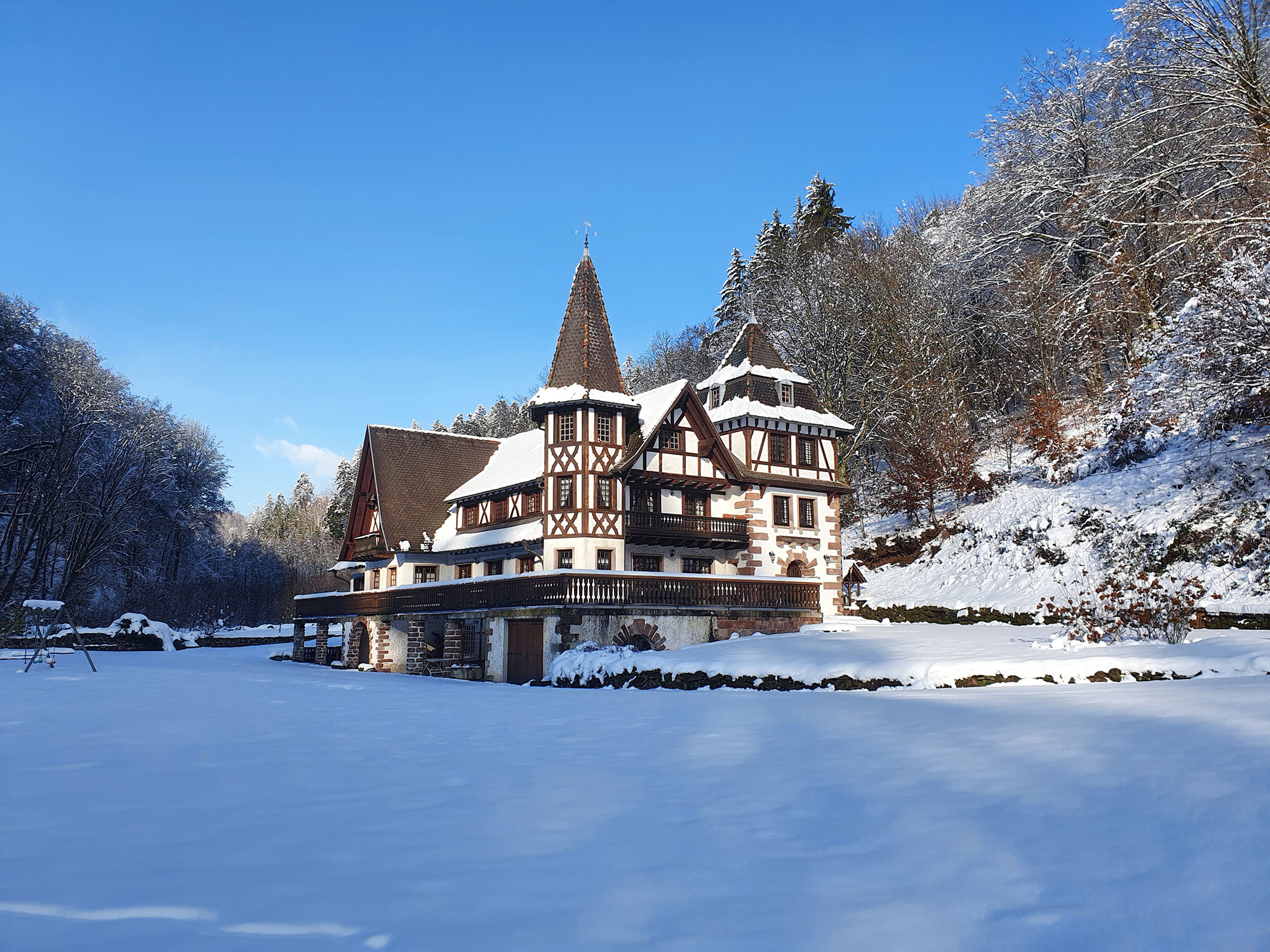 Au fond d'une vallée abondamment arborée du parc régional des Vosges, se tient la Heiligenmuehle, un ancien moulin à eau. Sa récente rénovation s'est faite en accord avec le charme du lieu, et permet aujourd'hui, d'accueillir confortablement des groupes de 12 personnes.